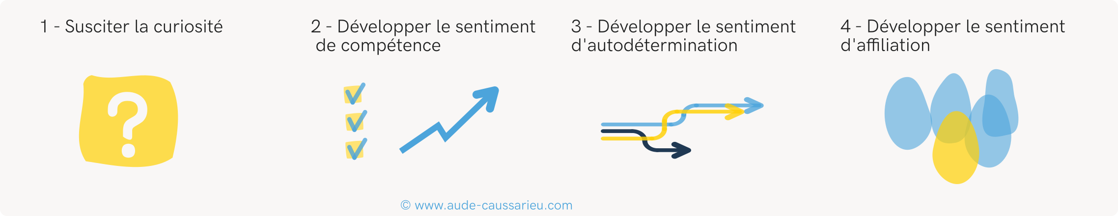 On dit souvent que les leviers de motivation intrinsèque sont les plus nobles et les plus puissants. En utilisant ces leviers, vous augmenterez l’engagement des apprenant·es à utiliser votre application car vous aurez produit une bonne application pédagogique.